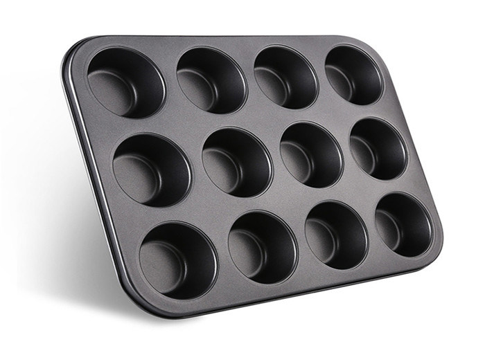Wytrzymały metalowy patelnik z 12 bułeczkami bezpiecznie przenosi battery do i z piekarnika.